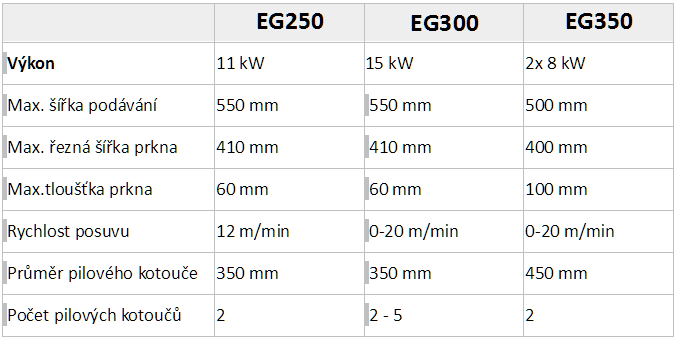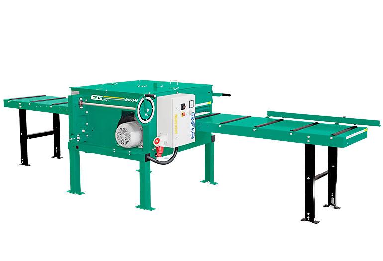 EG350 má proměnnou rychlost posuvu 0-20 m/min, elektrické stavění pilového kotouče a volitelně lasery pro nastavení prkna a Pracovní nastavení pro ukládání přednastavených tlouštěk.