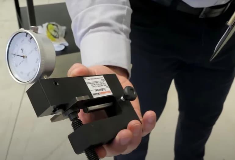 Podstatné je seřídit správnou polohu zarážky, která zastavuje pilový pás a nastavit správný bod pro ohýbání zubu. Číselníkový úchylkoměr ukazuje hodnotu nastavení šranku zubu. A opěrná ramena držící pilový pás vyžadují přestavení podle šířky pilového pásu.