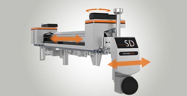 • každá z 50 servo osí SynchroDrive stola je ovládaná a polohovaná synchrónne pomocou softvéru stroja, čím je čas potrebný na nastavovanie stola redukovaný na absolútne minimum a zároveň je garantovaná presná poloha konzol a vákuových prísaviek na stole.