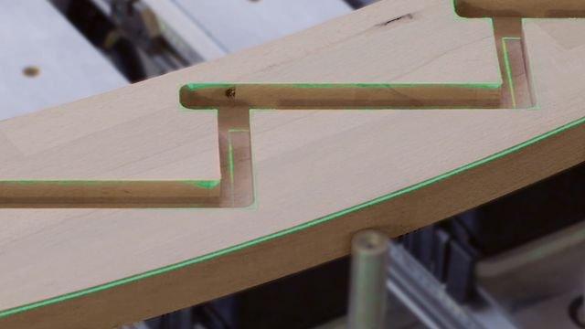 LEDkový stôl od Holz-Her – stôl s vizuálnymi nastaveniami sa stará o extrémne rýchle a presné nastavenie a znižuje tým na minimum chyby, ktoré by mohli inak pri opracovaní dielca vzniknúť. Vypočítané pozície konzol a prísaviek sú zobrazené užívateľovi pomocou farebných LED pásikov a za pomoci farebných kódov Vám laser zvýrazní typ prísavky, ktorý je potrebné v danom momente použiť. Bez akýchkoľvek problémov je možné ukázať aj uhol natočenia otočných prísaviek, čo robí z polohovania prísaviek pri voľných formách hračku.