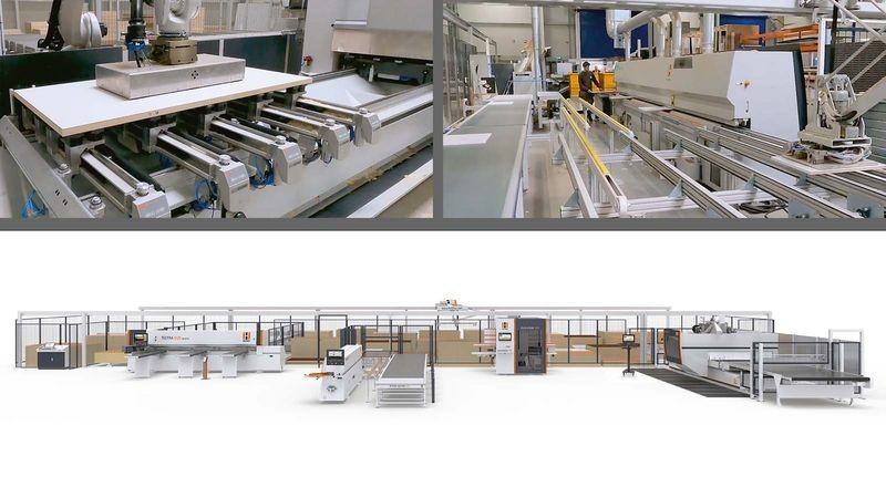 HOLZ-HER STORE-MASTER skladové riešenie pre maximálny výkon s pílou a nestingom vrátane automatického označovania dielcov štítkami (labeling).
