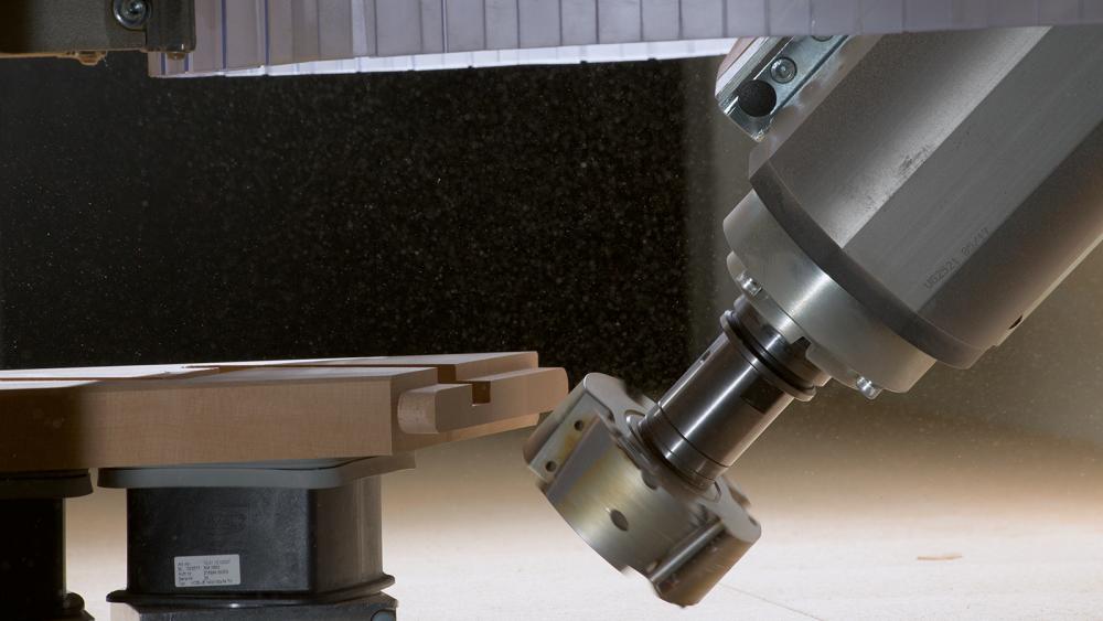 Kardánová obrábacia hlava s výkonom do 17 kW (štandardne 10 kW) sa stará o precízne zhotovenie komplexných skosených alebo zakrivených dielcov v prepracovanom dizajne ako sú zábradlia, stavebné komponenty nábytku alebo rôzne formy. Kompaktná, silná a interpolárna obrábacia hlava pracuje na otáčkach až do 24,000 ot./min. a má vďaka keramickému ložisku a kvapalinovému chladeniu extrémne dlhú životnosť.