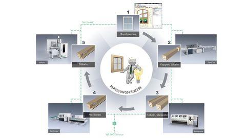 S pomocou rámovej výroby umožňuje WEINIG dodatočné zlepšenie organizovaného pracovného procesu. Napríklad výroba po jednom kuse, ktorá šetrí ofalcovanie krídlových dielcov. Existuje aj delenie profilov, ktoré umožňuje vyrobiť viacero druhov profilu za pomoci jedného nástroja. Tým sa drasticky redukuje celkový počet nástrojov nasadených na jednom zariadení a dosiahnuté sú minimálne prestoje vo výrobe.